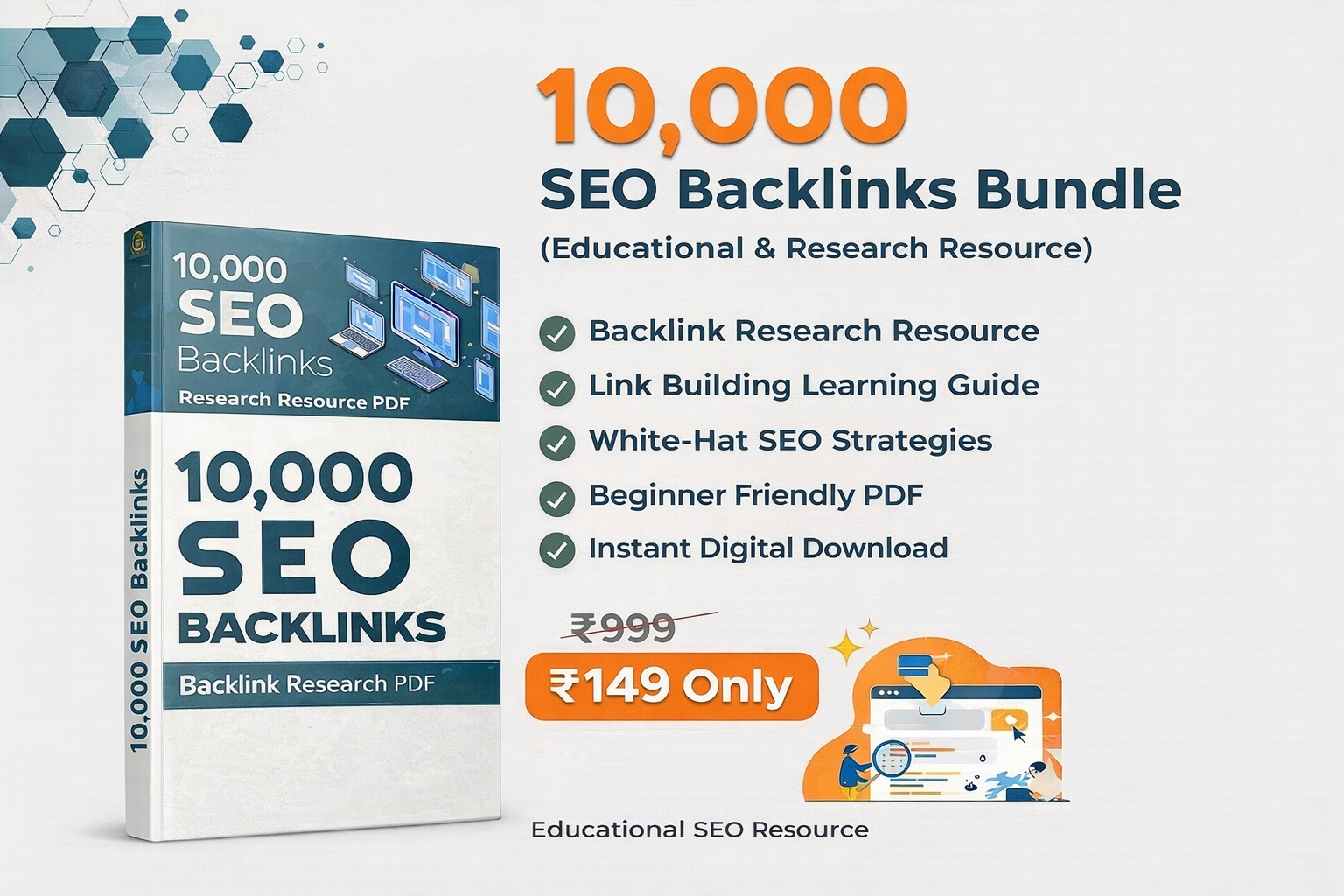 The 10,000 SEO Backlinks is a complete educational resource designed to help bloggers, freelancers, and digital marketers learn backlink research and link-building strategies effectively. Instead of spending hours searching for backlink opportunities, this bundle provides structured learning material to help you understand SEO link-building fundamentals.